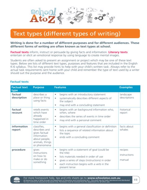 factual text types examples sentences