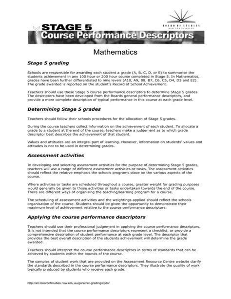 stage 5 course performance descriptors. There are any references about stage 5 course performance descriptors in here. you can look below.