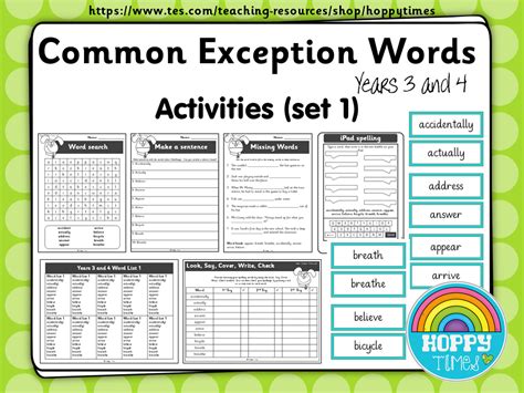 common exception words activities year 3